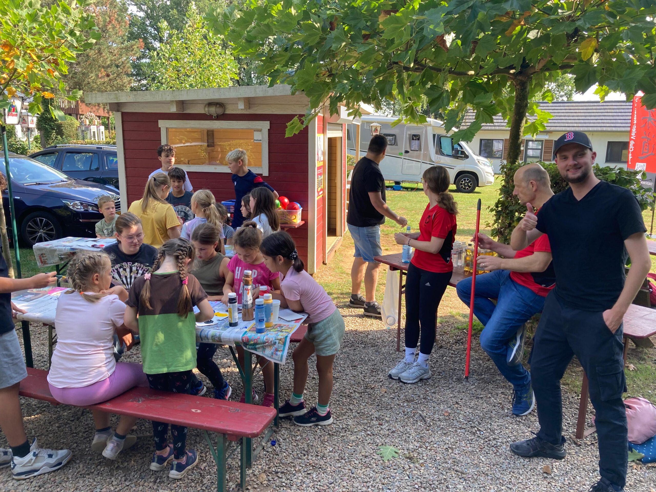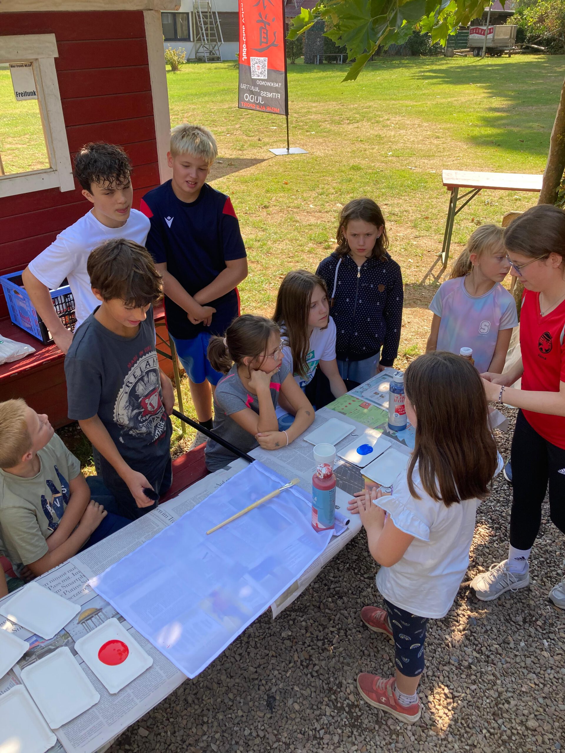 Am 6. September feierte unser Verein sein Sommerfest an der Grillhütte am niedrigseilgarten. Ab 15 Uhr trafen sich die Mitglieder, um zunächst die Flaggen für das anschließende Capture-the-Flag-Spiel kreativ zu gestalten. Nachdem die Farbe getrocknet war, ging es in den Wald wo das Spielfeld aufgebaut wurde.