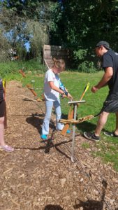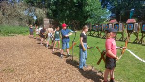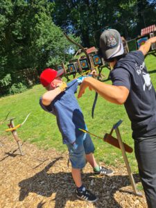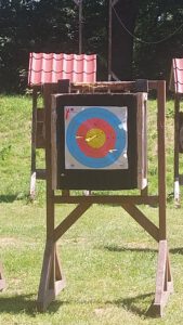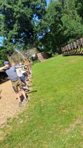 Am Samstag traten wir in die Fußstapfen von Robin Hood und versuchten uns im Bogenschießen. Auch hier gab es im Vorfeld eine Einweisung, damit jeder sicher mit Pfeil und Bogen umgehen konnte. Unter uns gab es auch zahlreiche Talente, die regelmäßig ins Schwarze (oder hier gelbe) trafen.