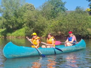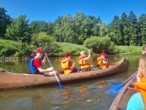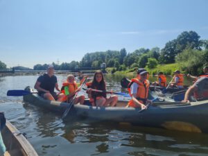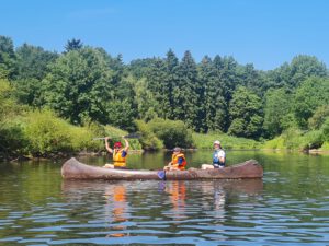 Neben viel Freizeit, Erholung und Spaß gab es noch zwei größere Programmpunkte auf unserer Liste. Am Freitag fuhren wir mit dem Kanu Fluss abwärts. Nach einer kurzen Einweisung und Einteilung in Gruppen ging es in die Boote. Bereits nach kurzer Zeit waren alle mit der Steuerung vertraut und konnten das Kanu relativ sicher in alle Richtungen bewegen. Nach der Tour und Reinigung der Boote, ging es zur Abkühlung eine Runde in die Ems schwimmen.