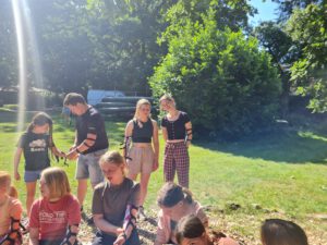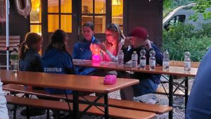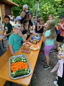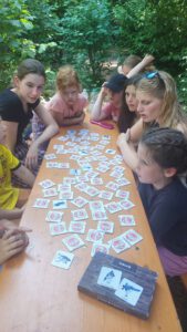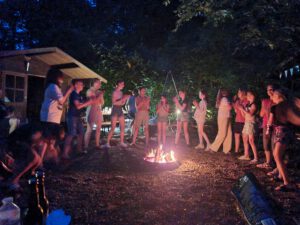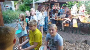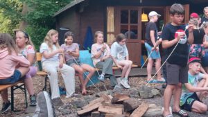 Die Zeit zwischen den Aktionen haben wir für Spiele im Wald oder der großen Rasenfläche des Camps genutzt. Sowie mit unterschiedlichen Karten- und Würfelspielen. Abends wurden am Lagerfeuer Marshmallows gemacht und um das Feuer getanzt.