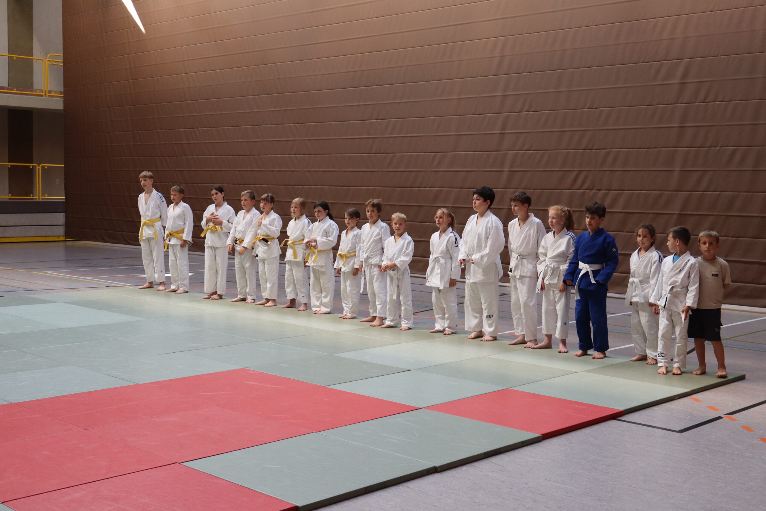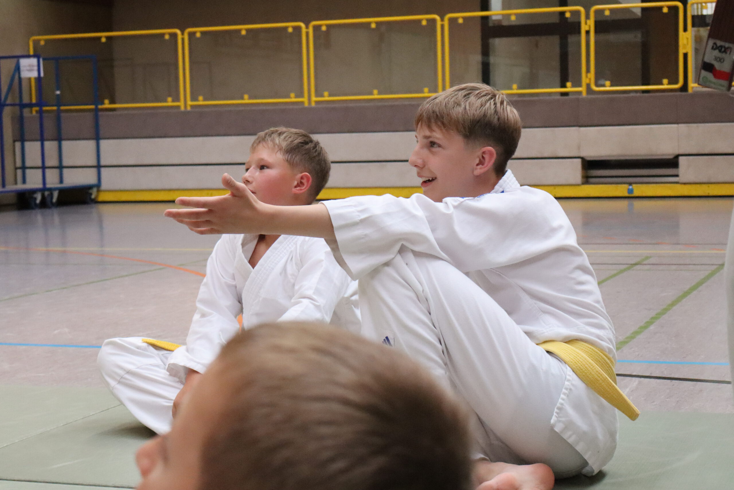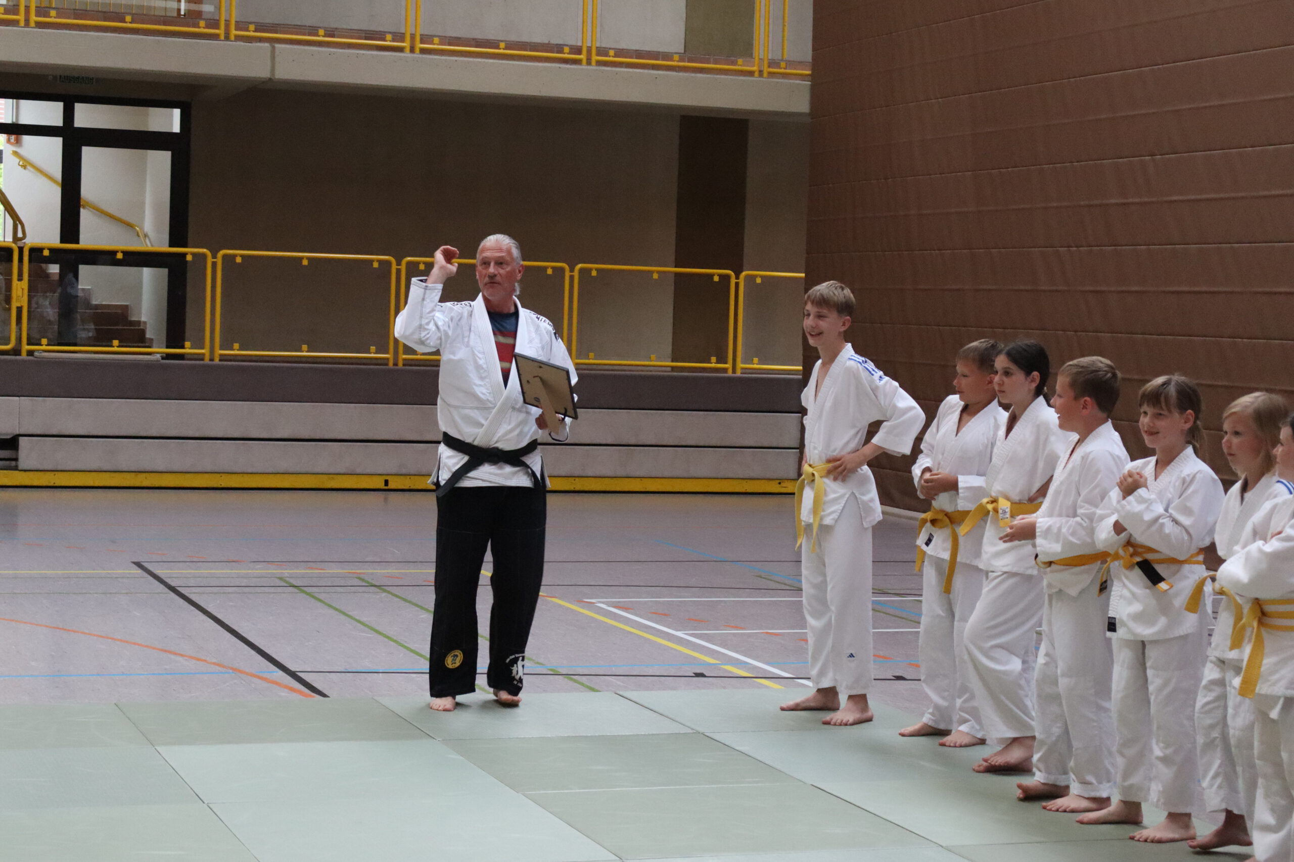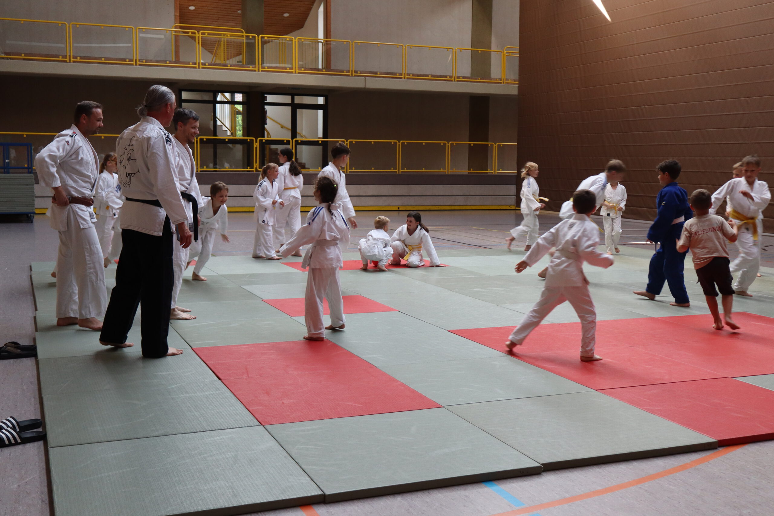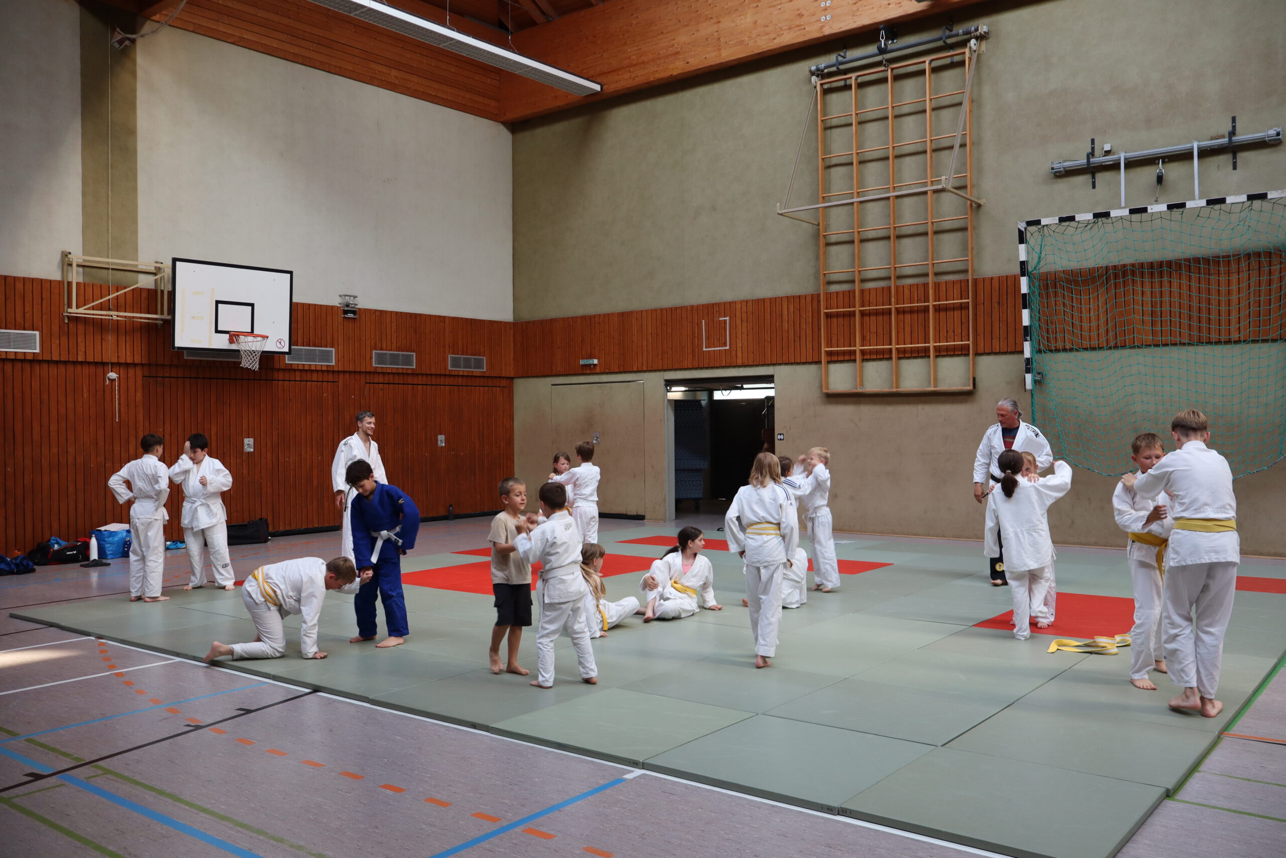 Und da Andreas Dern schon mal da war, kamen auch gleich die Kinder und Jugendlichen in den Genuss, einmal einen anderen, erfahrenen Jugendtrainer live auf der Matte zu erleben. Mit viel Witz brachte er seine Begeisterung für den JuJutsu-Sport an die jungen Sportlerinnen und Sportler. Diese dankten es ihm mit viel Fleiß und leuchtenden Kinderaugen. Mit Bildern vermochte es Andreas den Kindern beizubringen, sich wie ein Superheld zu verteidigen. So lernten sie die Verteidigungstechniken der Superhelden von Hello Kitty bis zum Hulk.